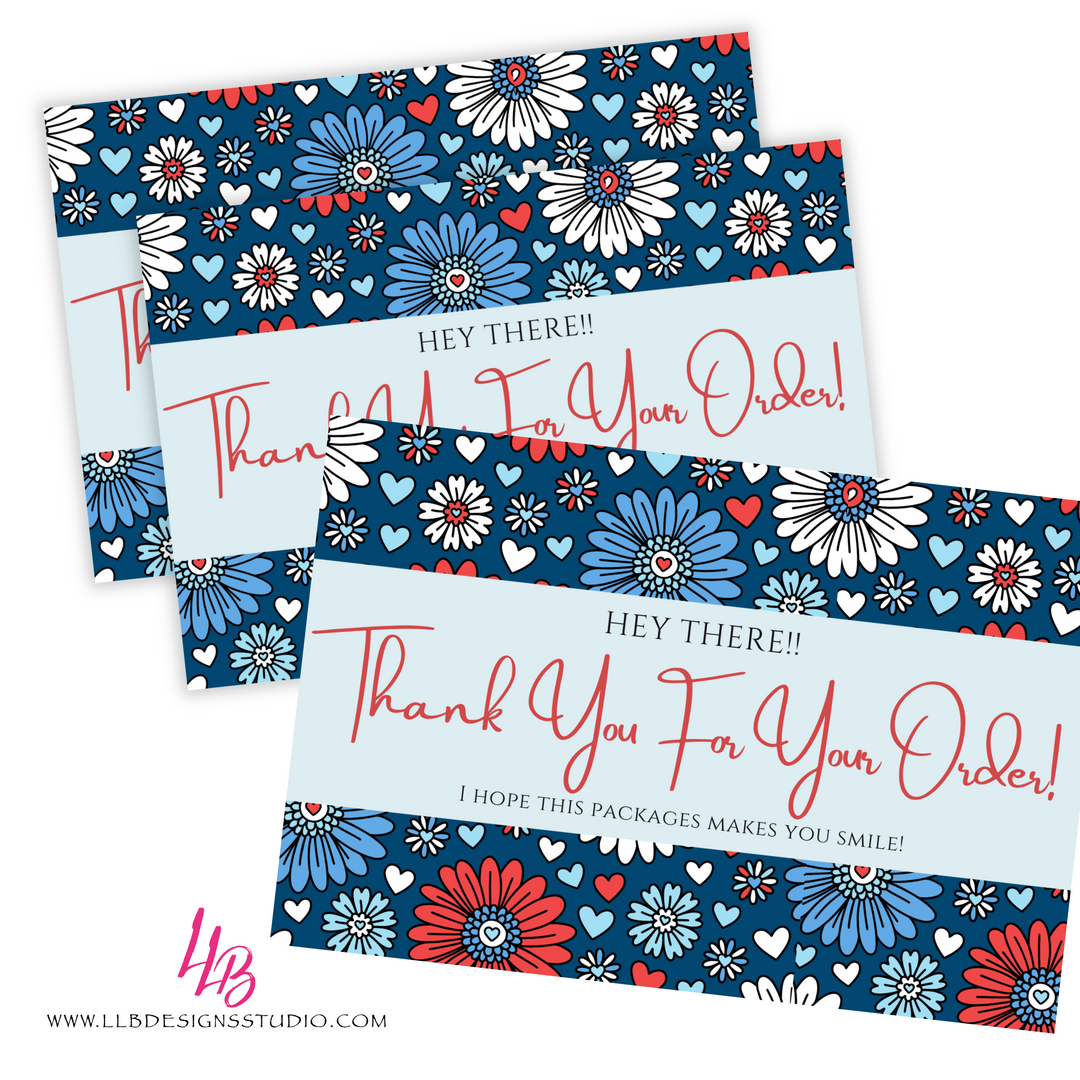 Packaging Insert | Thank You Blue Floral | SIZE 4 X 6 INCHES | Card Number: TY96 | Ready To Ship