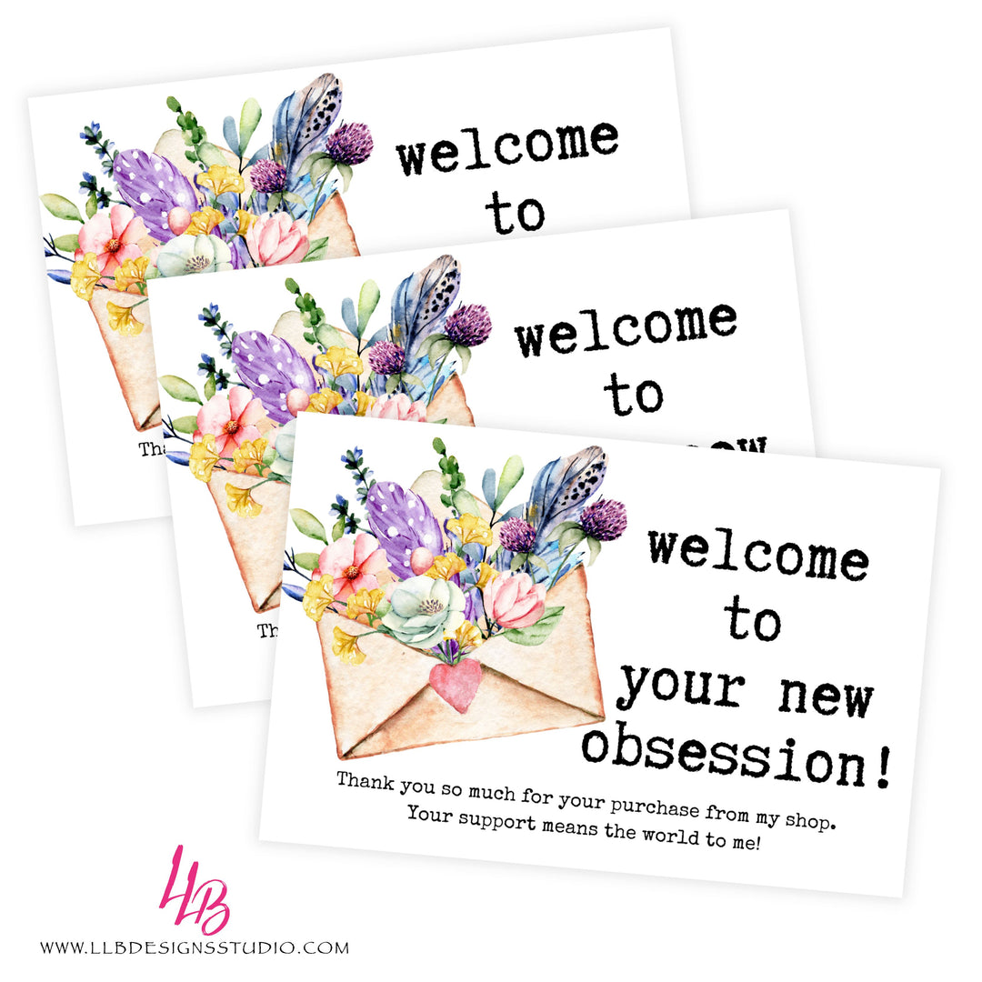 Welcome To Your New Obsession - Floral Envelope Card - Packaging Inserts - SIZE 4 X 6 INCHES | Card Number: TY117 | Ready To Ship