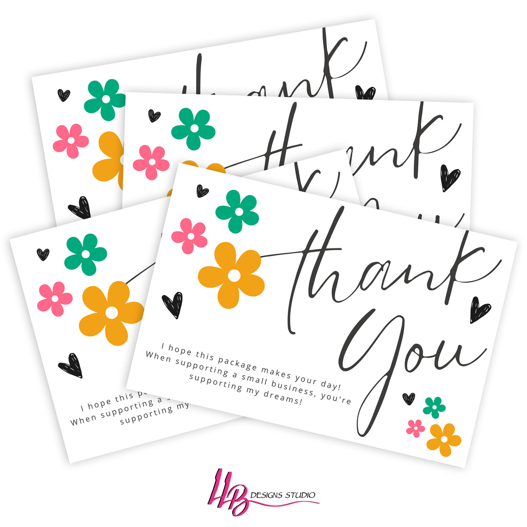 Daisy - Thank You Packaging Insert, I hope this package makes your da, Daisy Heart Theme - Packaging Inserts - SIZE 4 X 6 INCHES | Card Number: TY116 | Ready To Ship