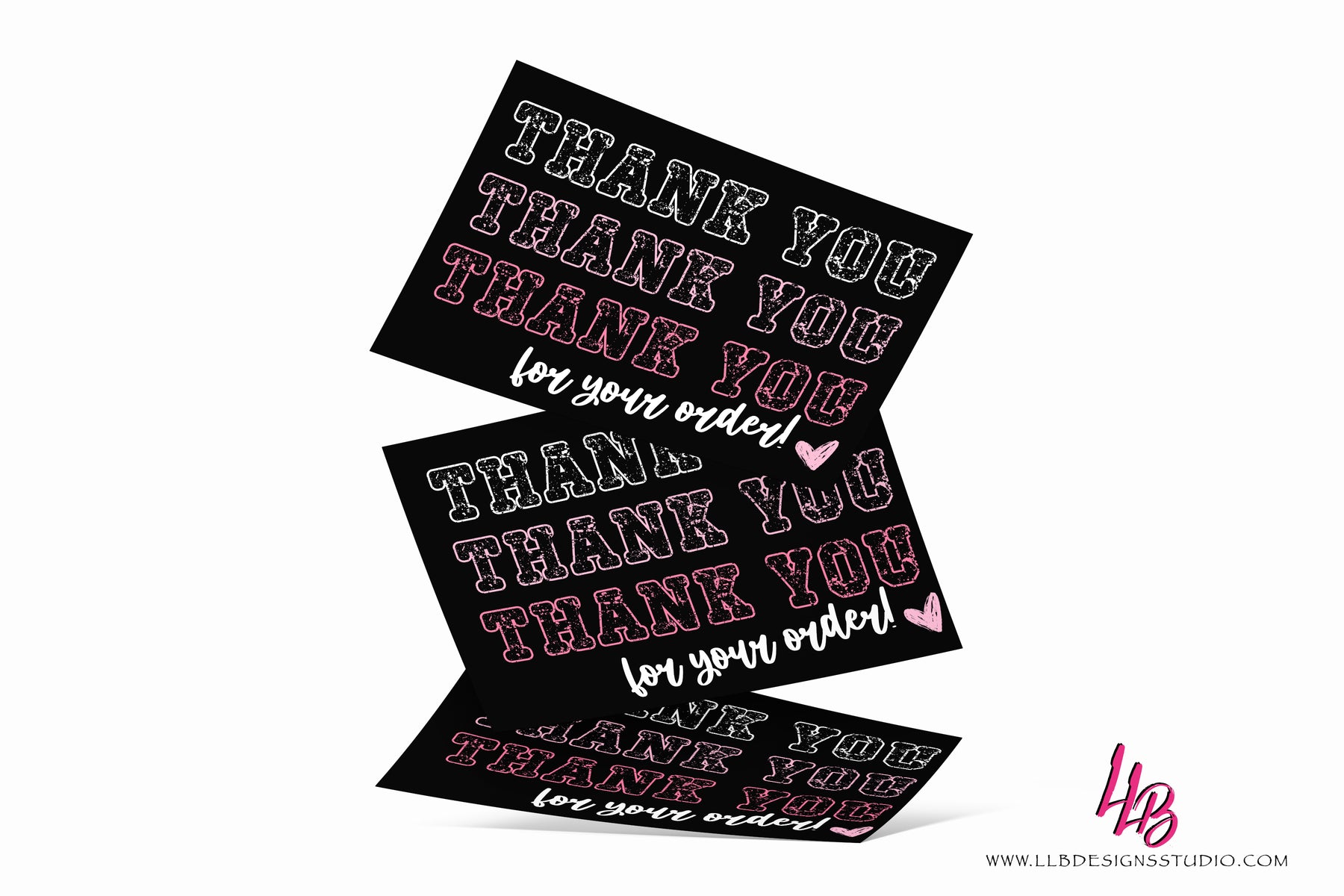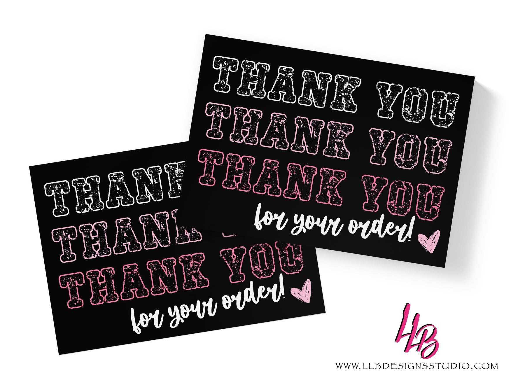 Thank You Thank You Thank You For Your Order - Black and Pink - Packaging Inserts - SIZE 4 X 6 INCHES | Card Number: TY116 | Ready To Ship